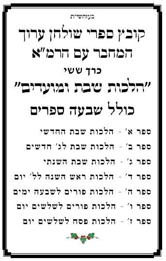 קובץ ספרי שולחן ערוך אורח חיים - כרך ה'